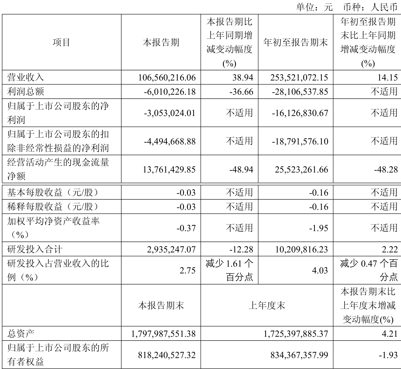 中证智能财讯路德环境(688156)10月31日披露2025年第三季度报告。前三季度公司实现营业总收入2.54亿元,同比增长14.15%;归母净利润亏损1612.68万元,上年同期亏损344.4万元;扣非净利润亏损1879.16万元,上年同期亏损528.72万元;经营活动产生的现金流量净额为2552.33万元,同比下降48.28%;报告期内,路德环境基本每股收益为-0.16元,加权平均净资产收益率为-1.95%。