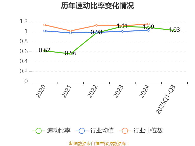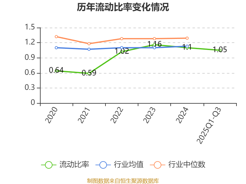 2025年前三季度,公司流动比率为1.05,速动比率为1.03。