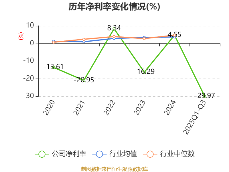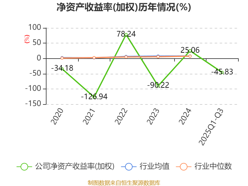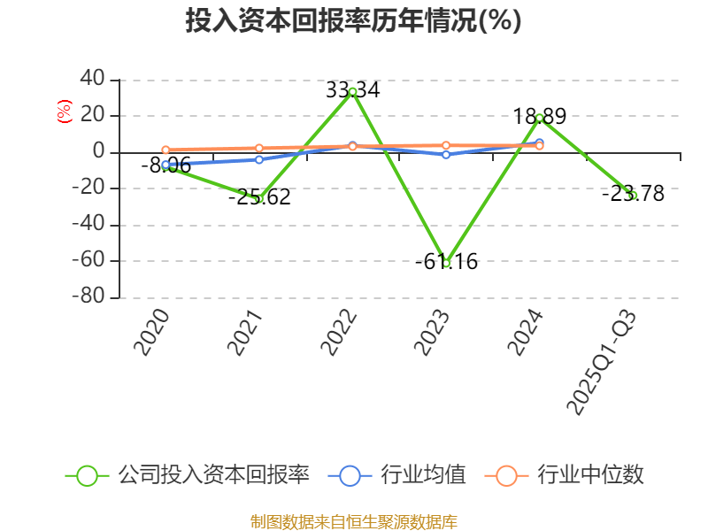 盈利能力方面, 2025年前三季度公司加权平均净资产收益率为-45.83%,同比下降24.37个百分点。公司2025年前三季度投入资本回报率为-23.78%,较上年同期下降6.69个百分点。