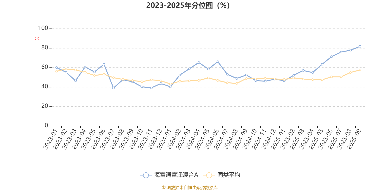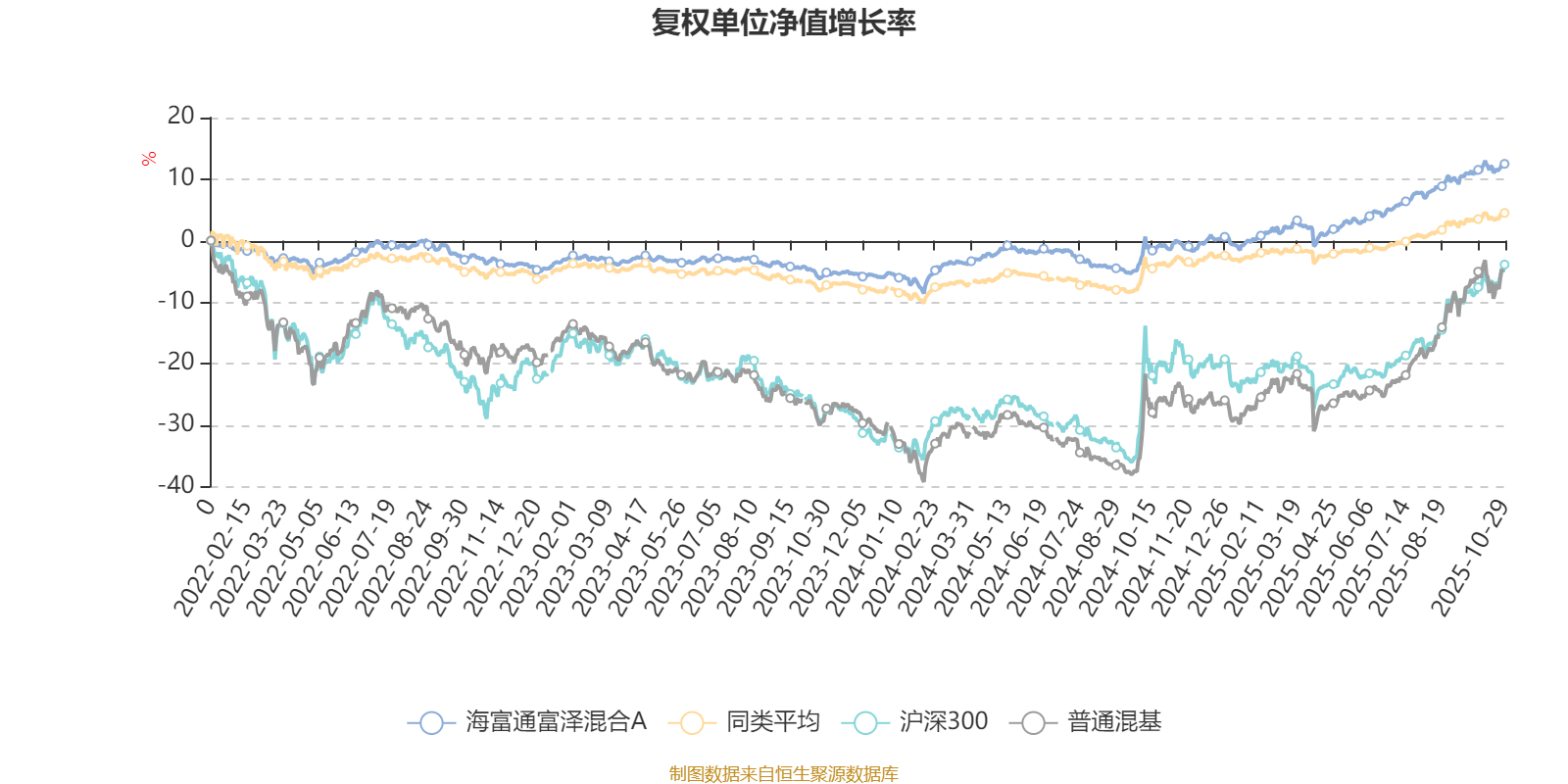 截至10月29日,海富通富泽混合A近三个月复权单位净值增长率为4.34%,位于同类可比基金156/629;近半年复权单位净值增长率为10.57%,位于同类可比基金86/629;近一年复权单位净值增长率为13.66%,位于同类可比基金73/623;近三年复权单位净值增长率为16.72%,位于同类可比基金146/557。