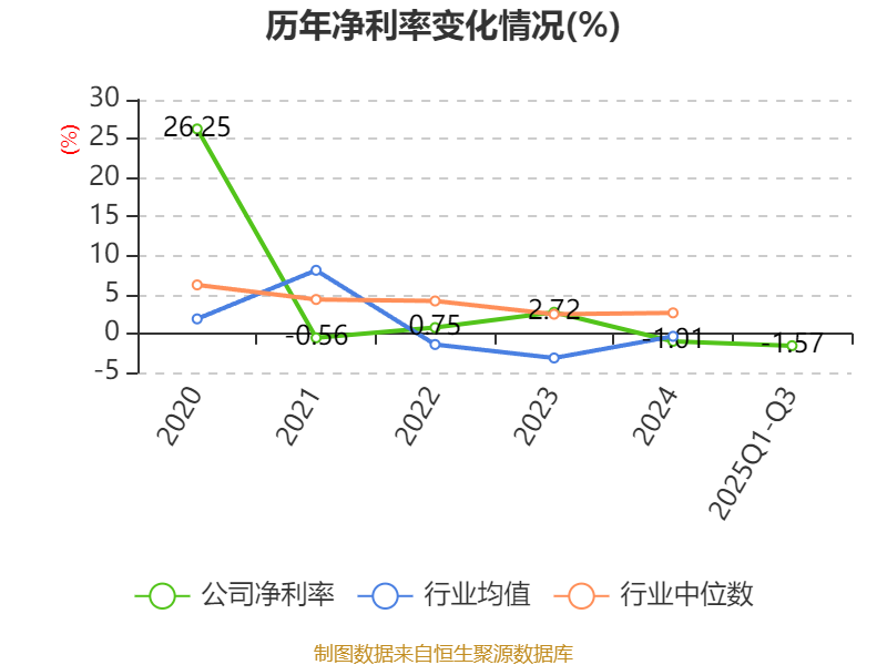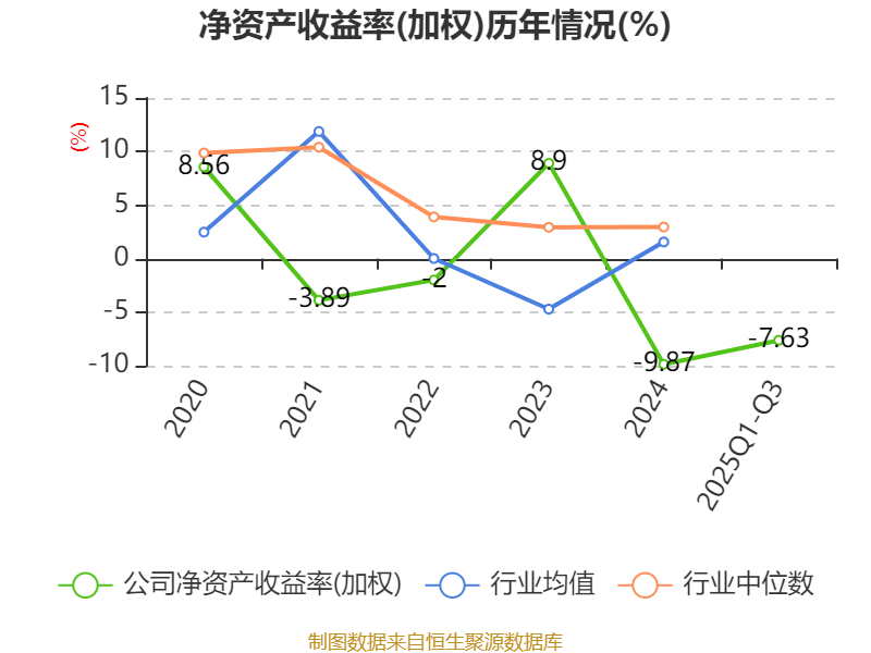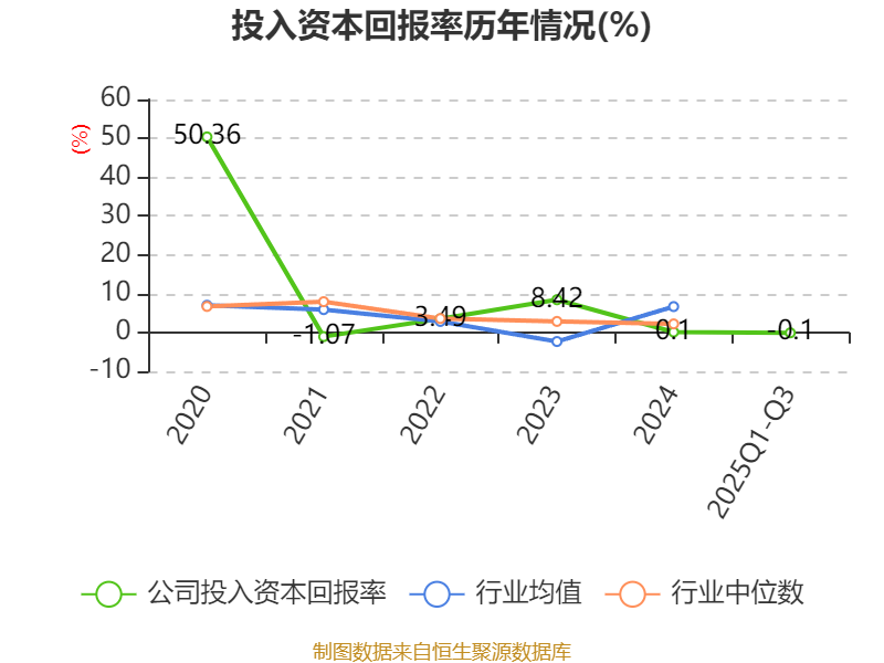盈利能力方面, 2025年前三季度公司加权平均净资产收益率为-7.63%,同比上升1.06个百分点。公司2025年前三季度投入资本回报率为-0.1%,较上年同期上升1.89个百分点。