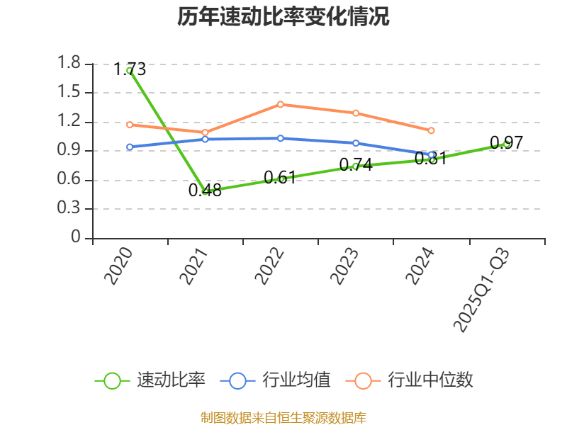 2025年前三季度,公司流动比率为1.34,速动比率为0.97。