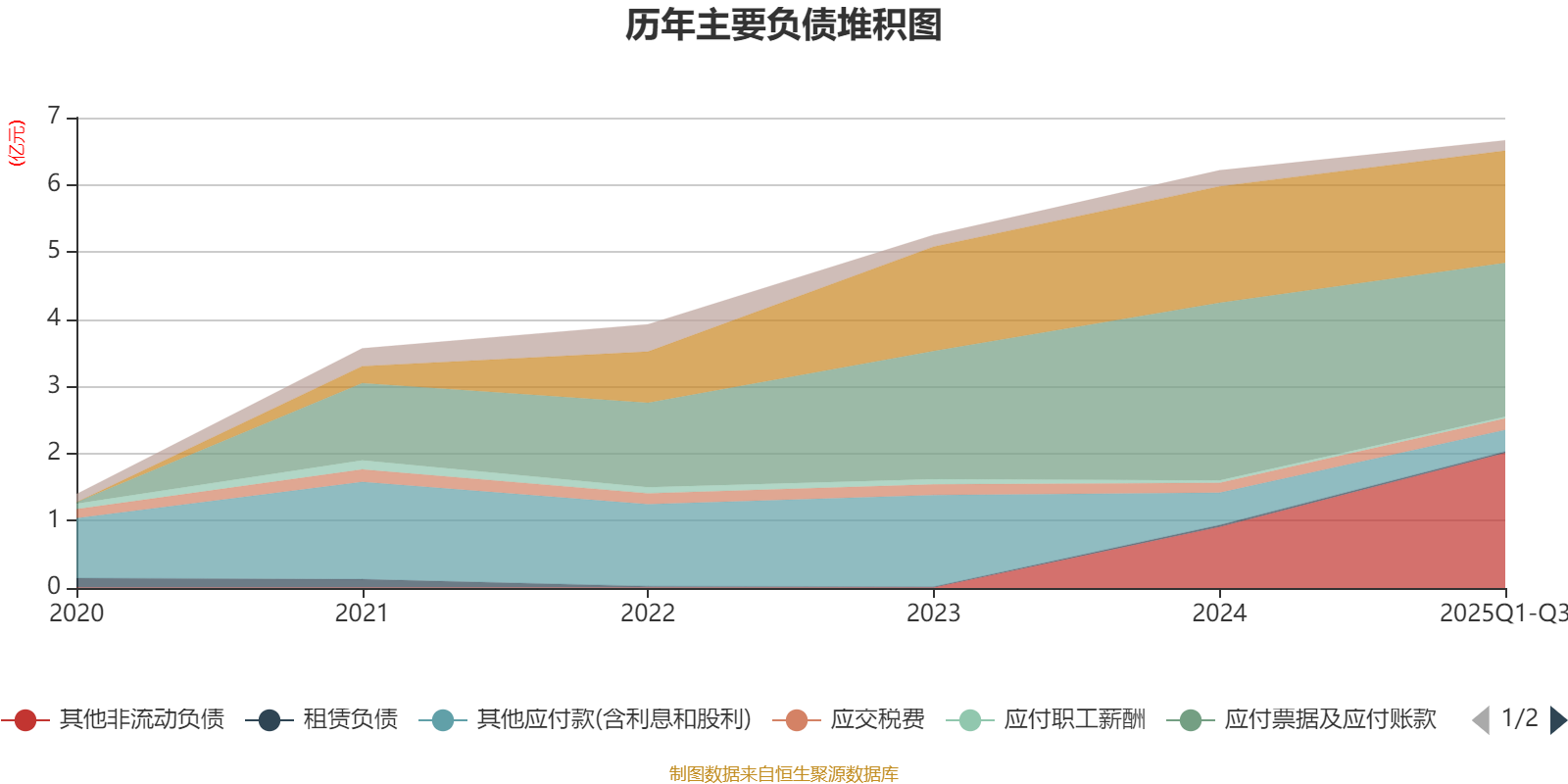 负债重大变化方面,截至2025年三季度末,公司其他非流动负债较上年末增加120.96%,占公司总资产比重上升12.01个百分点;应付票据及应付账款较上年末减少13.4%,占公司总资产比重下降5.84个百分点;其他应付款(含利息和股利)较上年末减少33.1%,占公司总资产比重下降2.14个百分点;短期借款较上年末减少3.57%,占公司总资产比重下降1.87个百分点。