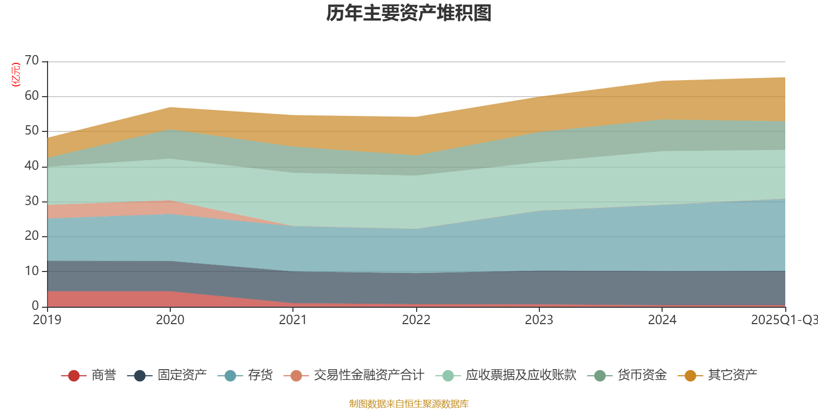 资产重大变化方面,截至2025年三季度末,公司应收票据及应收账款较上年末减少9.28%,占公司总资产比重下降2.54个百分点;存货较上年末增加9.03%,占公司总资产比重上升2.16个百分点;预付款项较上年末增加79.4%,占公司总资产比重上升1.78个百分点;货币资金较上年末减少9.42%,占公司总资产比重下降1.51个百分点。