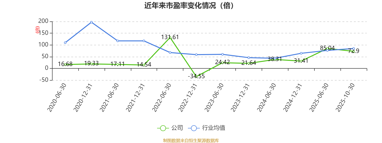 以10月30日收盘价计算,威海广泰目前市盈率(TTM)约为72.9倍,市净率(LF)约1.71倍,市销率(TTM)约1.7倍。
