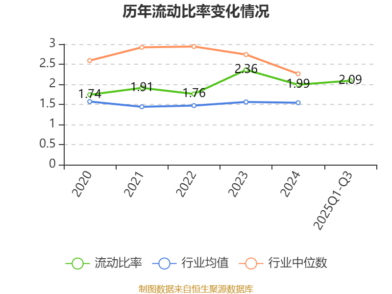 2025年前三季度,公司流动比率为2.09,速动比率为1.18。