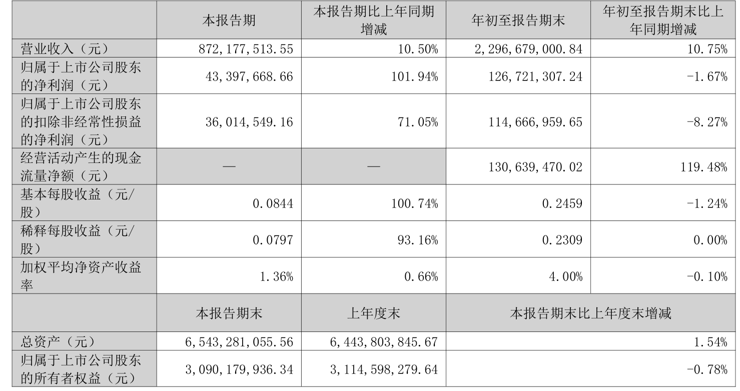 负债重大变化方面,截至2025年三季度末,公司长期借款较上年末增加126.57%,占公司总资产比重上升2.44个百分点;短期借款较上年末减少10.88%,占公司总资产比重下降1.52个百分点;应付票据及应付账款较上年末增加12.28%,占公司总资产比重上升1.29个百分点;一年内到期的非流动负债较上年末减少83.83%,占公司总资产比重下降1.19个百分点。