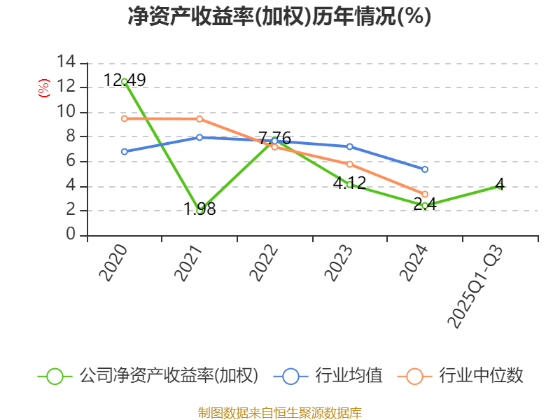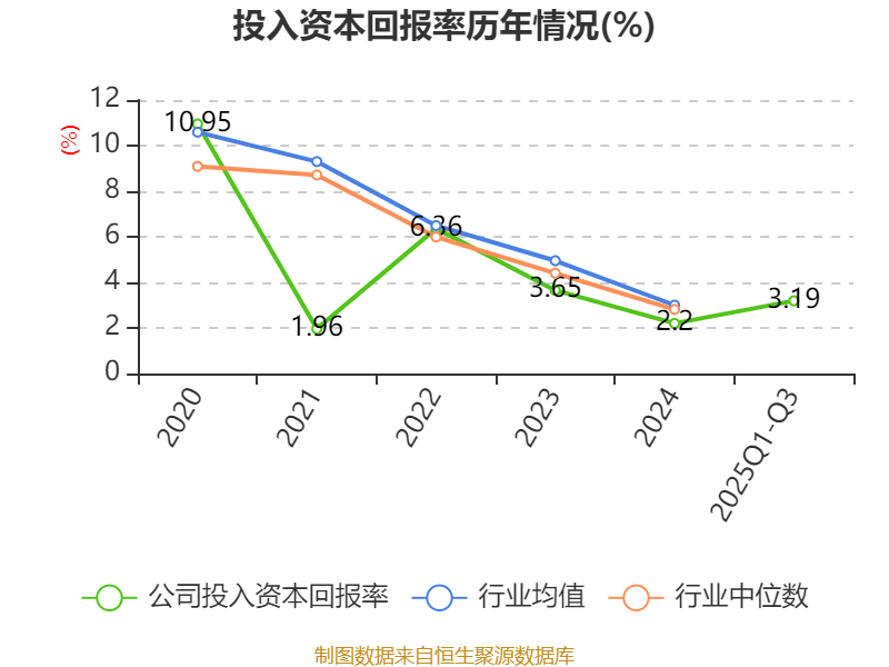 盈利能力方面, 2025年前三季度公司加权平均净资产收益率为4%,同比下降0.1个百分点。公司2025年前三季度投入资本回报率为3.19%,较上年同期下降0.04个百分点。