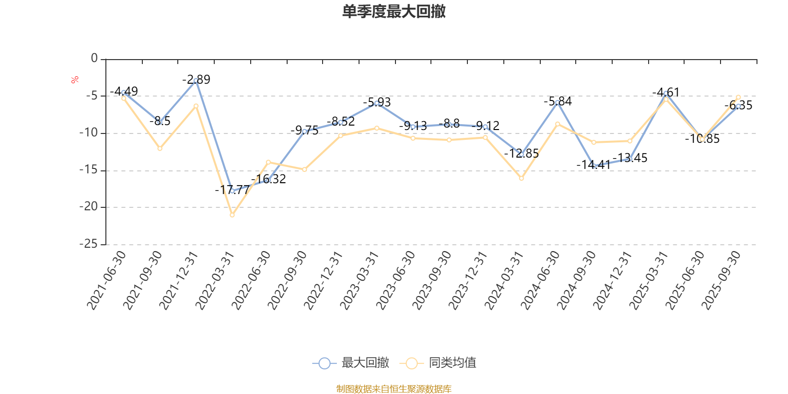 截至10月29日,基金近三年最大回撤为30%,同类可比基金排名39/176。单季度最大回撤出现在2022年一季度,为17.77%。