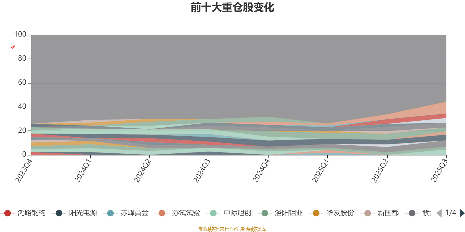 截至2025年三季度末,基金十大重仓股分别是新易盛、紫金矿业、宁德时代、中际旭创、工业富联、沪电股份、天孚通信、建发股份、盛屯矿业、洛阳钼业。