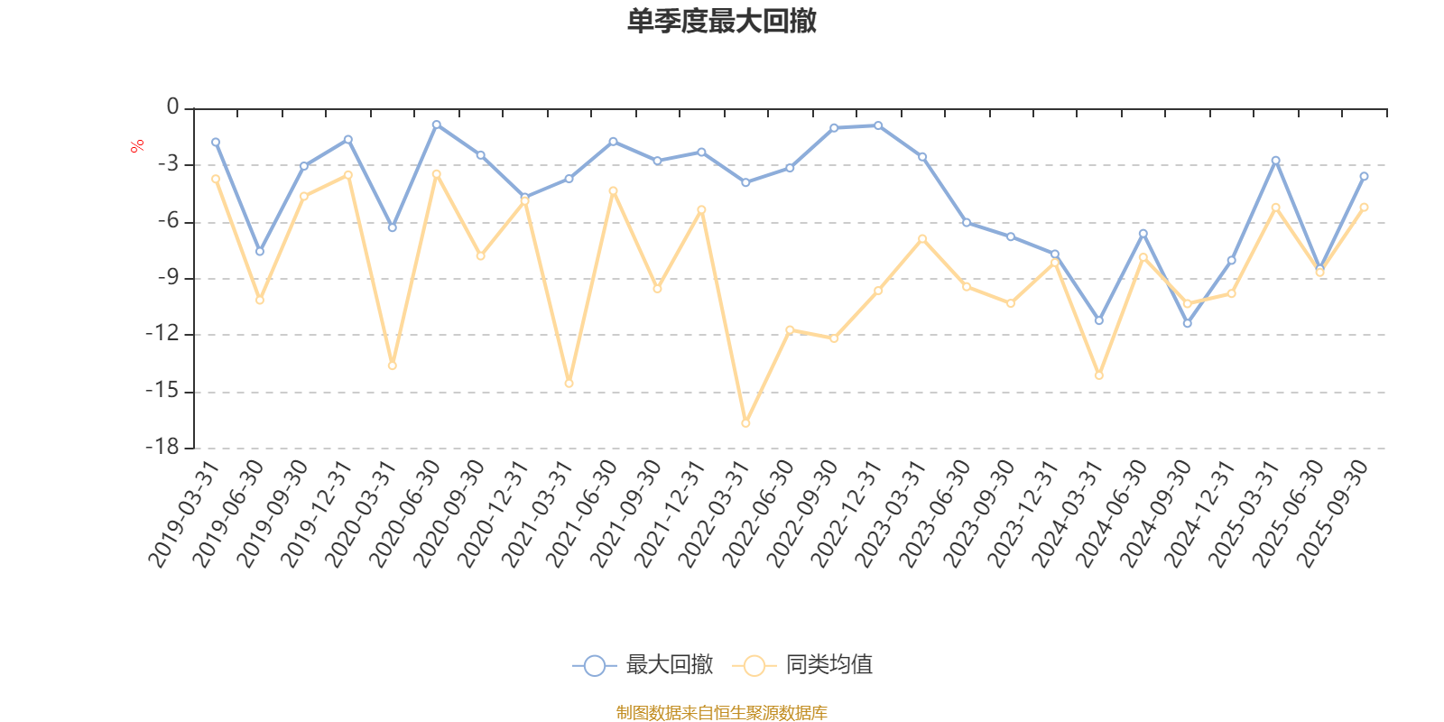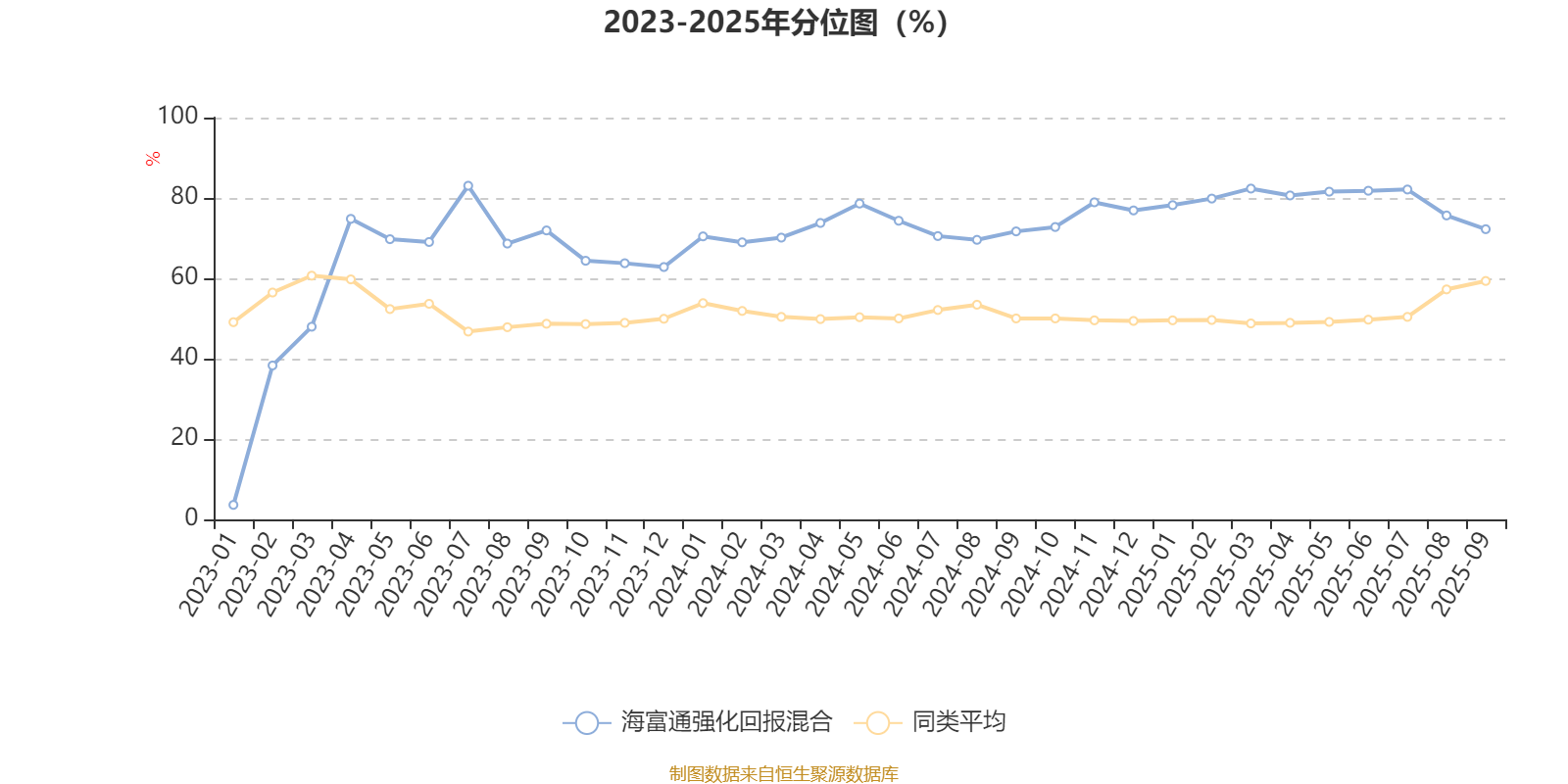 通过所选区间该基金净值增长率分位图,可以观察该基金与同类基金业绩比较情况。图为坐标原点到区间内某时点的净值增长率在同类基金中的分位数。