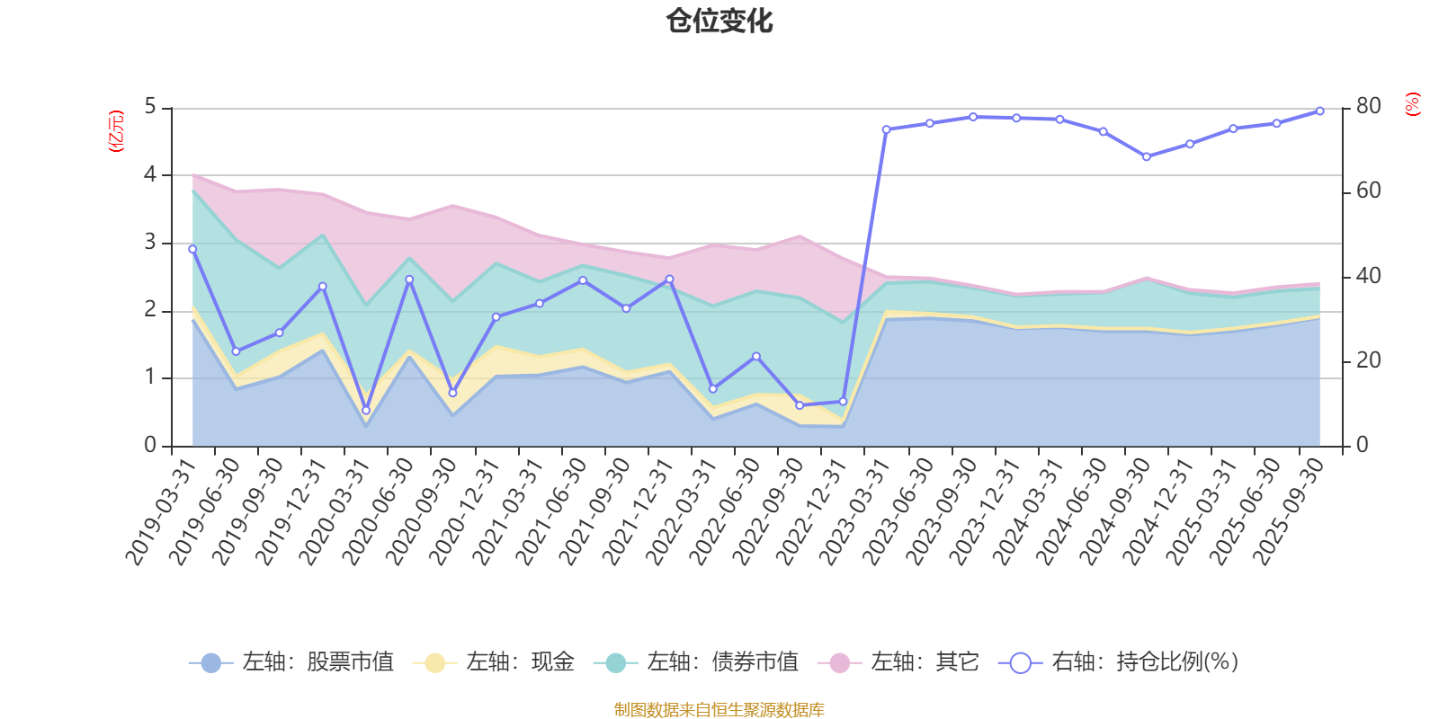 据定期报告数据统计,近三年平均股票仓位为69.96%,同类平均为72.35%。2025年三季度末基金达到79.25%的最高仓位,2020年一季度末最低,为8.48%。