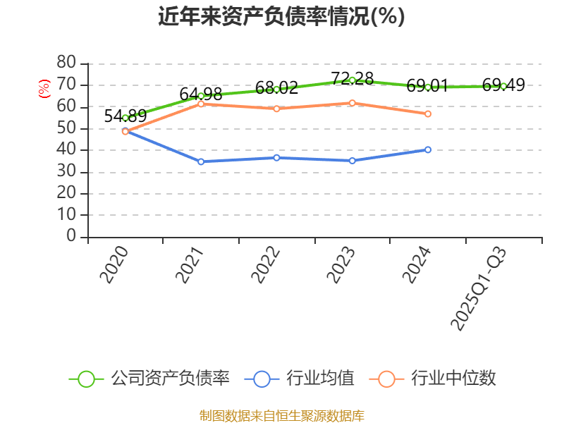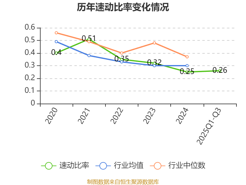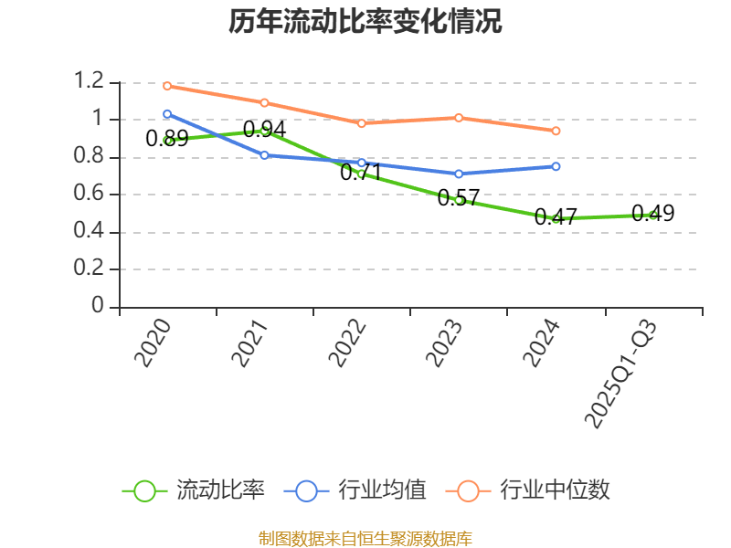 2025年前三季度,公司流动比率为0.49,速动比率为0.26。