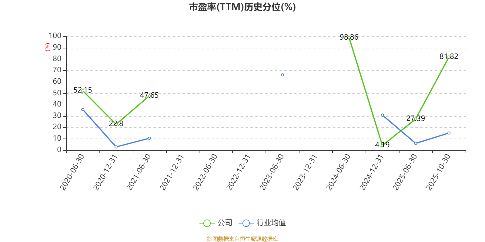 市盈率、市净率为负时,不显示当期分位数,会导致折线图中断。