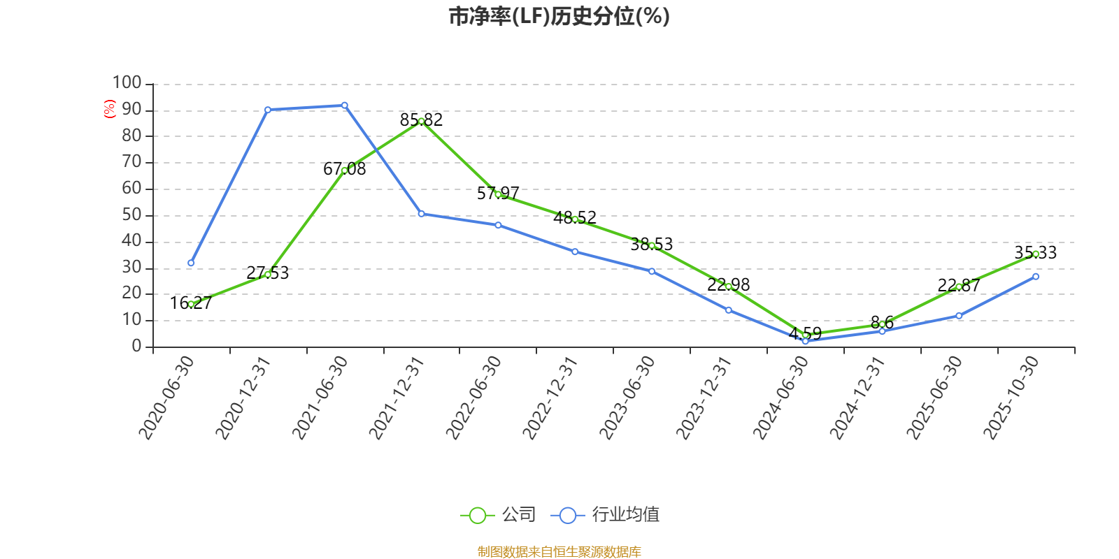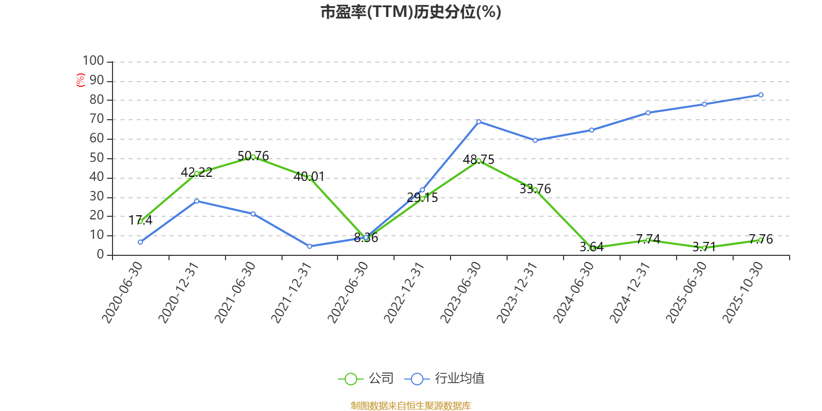 市盈率、市净率为负时,不显示当期分位数,会导致折线图中断。