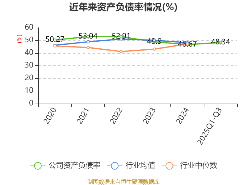 负债重大变化方面,截至2025年三季度末,公司长期借款较上年末增加96.38%,占公司总资产比重上升4.81个百分点;短期借款较上年末减少5.44%,占公司总资产比重下降2.26个百分点;其他应付款(含利息和股利)较上年末增加70.91%,占公司总资产比重上升0.85个百分点;一年内到期的非流动负债较上年末减少97.9%,占公司总资产比重下降0.76个百分点。