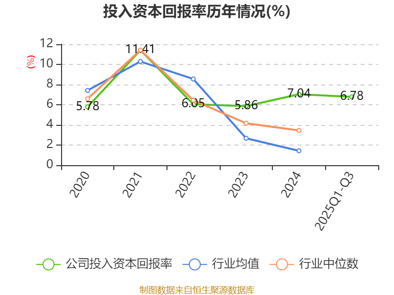 盈利能力方面, 2025年前三季度公司加权平均净资产收益率为10.65%,同比上升2.75个百分点。公司2025年前三季度投入资本回报率为6.78%,较上年同期上升1.54个百分点。