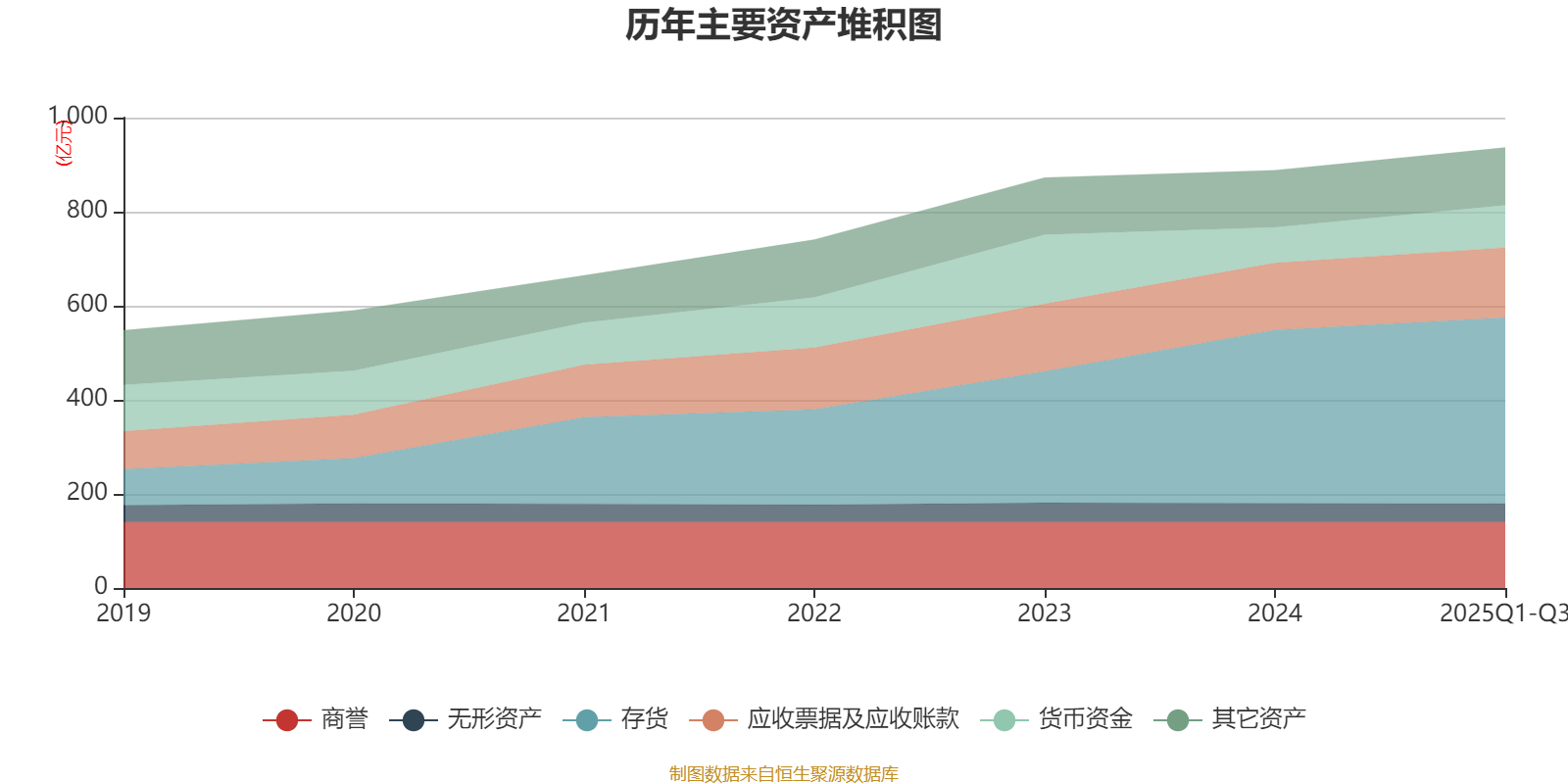 资产重大变化方面,截至2025年三季度末,公司货币资金较上年末增加19.52%,占公司总资产比重上升1.13个百分点;商誉较上年末没有变化,占公司总资产比重下降0.81个百分点;存货较上年末增加7.43%,占公司总资产比重上升0.79个百分点;合同资产较上年末减少31.76%,占公司总资产比重下降0.51个百分点。