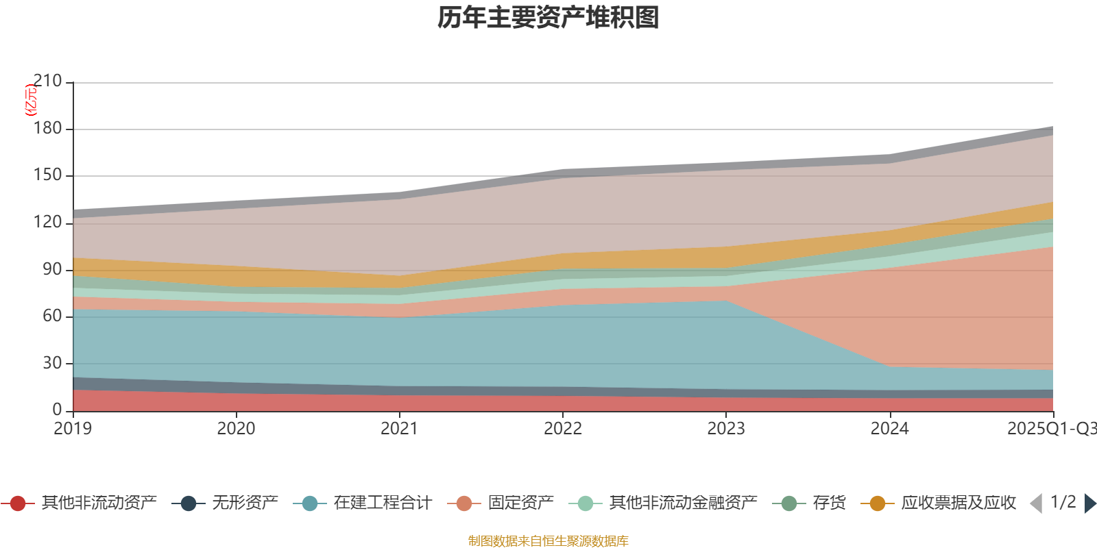 资产重大变化方面,截至2025年三季度末,公司固定资产较上年末增加24.48%,占公司总资产比重上升4.71个百分点;货币资金较上年末减少0.18%,占公司总资产比重下降2.6个百分点;在建工程合计较上年末减少15.34%,占公司总资产比重下降2.16个百分点;其他非流动金融资产较上年末增加27.88%,占公司总资产比重上升0.68个百分点。
