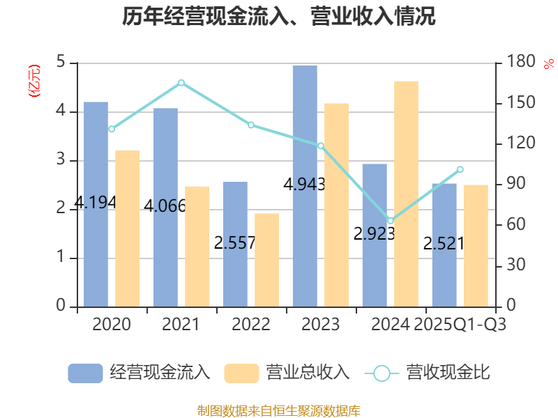 2025年前三季度,公司流动比率为4.86,速动比率为4.1。