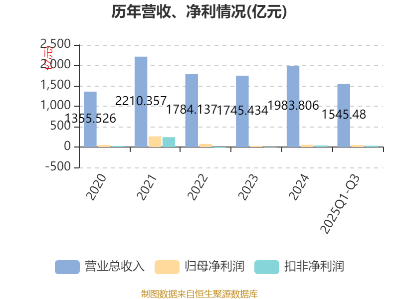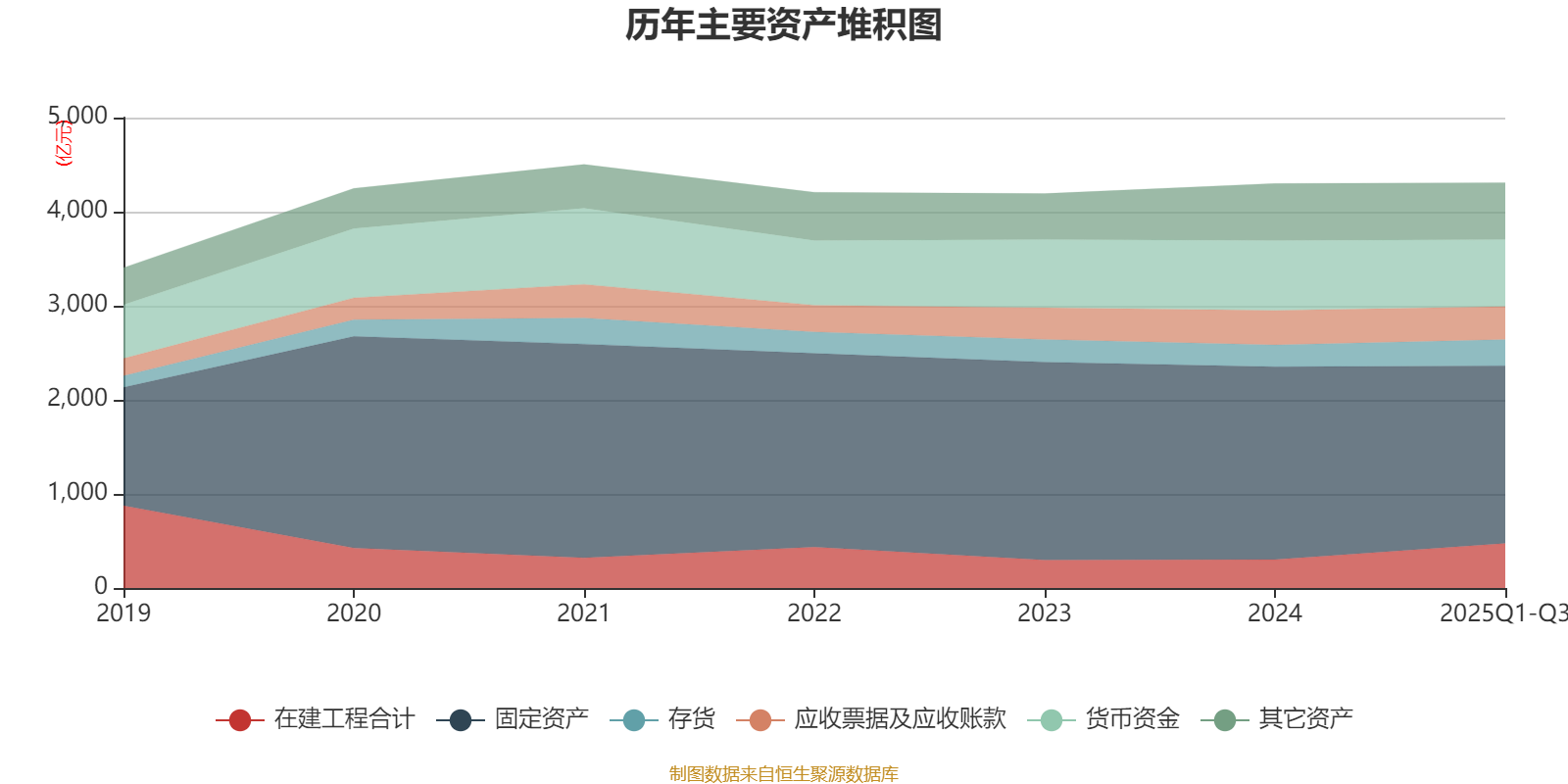 资产重大变化方面,截至2025年三季度末,公司在建工程合计较上年末增加56.9%,占公司总资产比重上升3.97个百分点;固定资产较上年末减少7.84%,占公司总资产比重下降3.82个百分点;存货较上年末增加19.49%,占公司总资产比重上升1.05个百分点;长期股权投资较上年末增加32.13%,占公司总资产比重上升1个百分点。