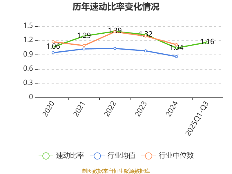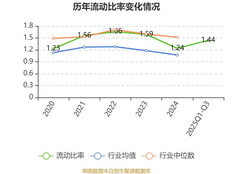 2025年前三季度,公司流动比率为1.44,速动比率为1.16。