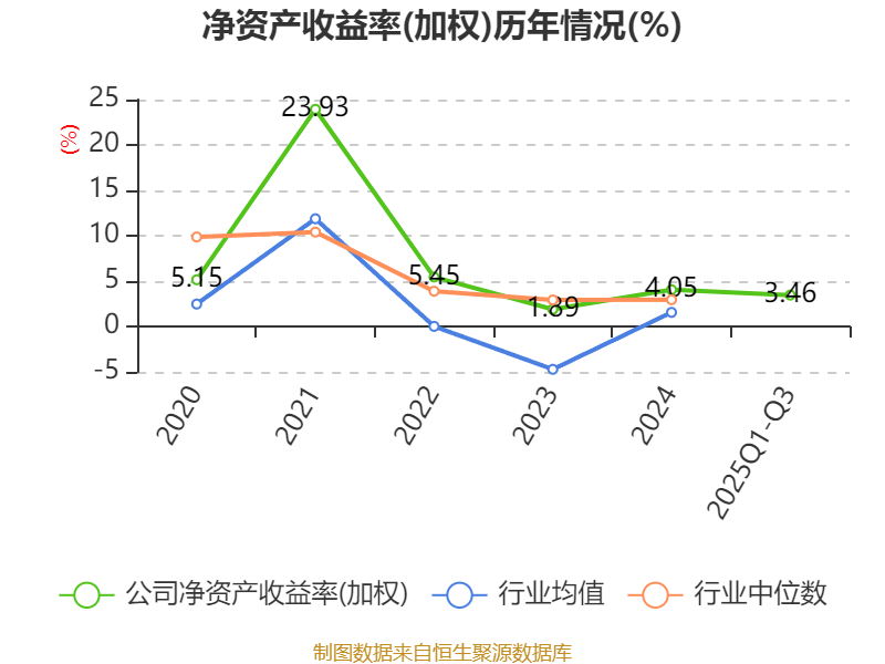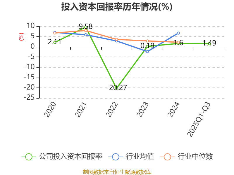 盈利能力方面, 2025年前三季度公司加权平均净资产收益率为3.46%,同比上升0.93个百分点。公司2025年前三季度投入资本回报率为1.49%,较上年同期上升0.67个百分点。