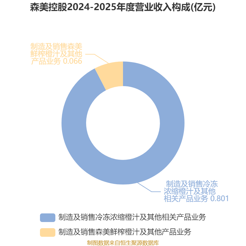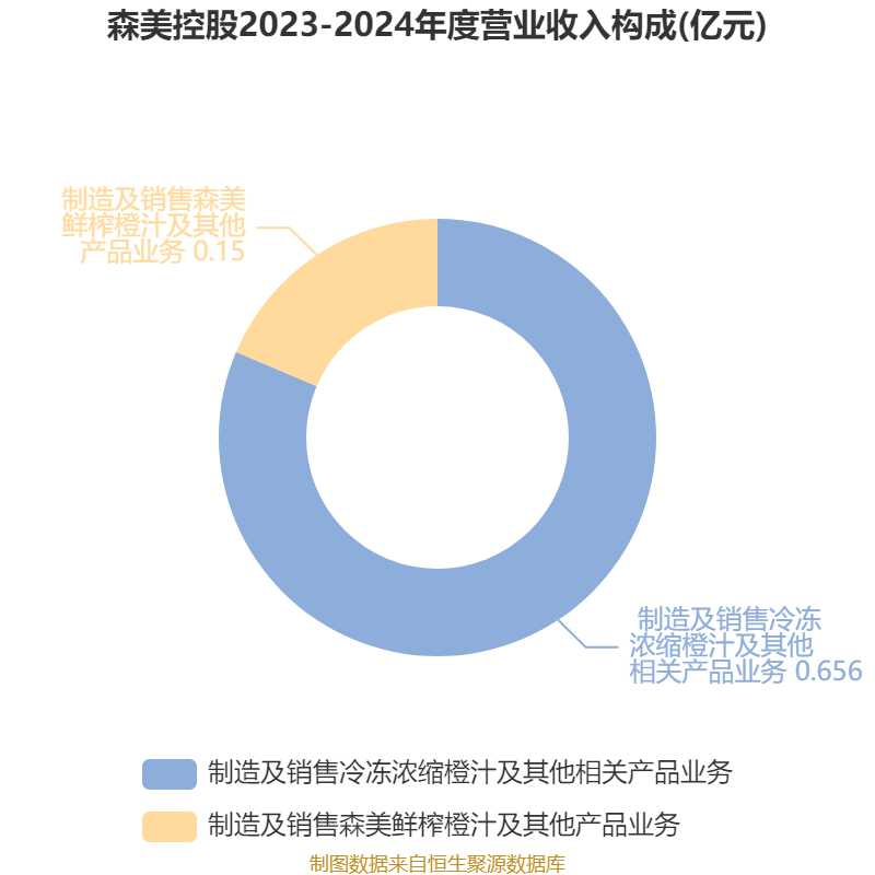 公司主要从事生产及销售橙汁及相关产品,连同其附属公司,通过两个分部运营业务。制造及销售森美鲜榨橙汁及其他产品业务分部从事制造及销售森美鲜榨橙汁及其他产品。制造及销售冷冻浓缩橙汁及其他相关产品业务分部从事制造及销售冷冻浓缩橙汁及其他相关产品。亦经营网上商店销售橙汁。