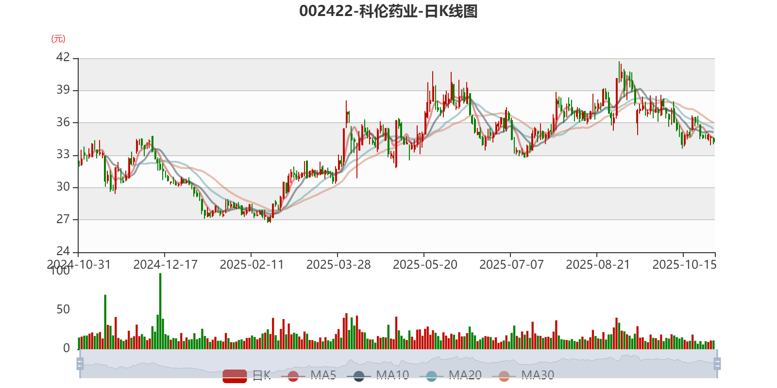 中证智能财讯科伦药业(002422)10月31日披露2025年第三季度报告。前三季度公司实现营业总收入132.77亿元,同比下降20.92%;归母净利润12.01亿元,同比下降51.41%;扣非净利润11.47亿元,同比下降53.12%;经营活动产生的现金流量净额为16.84亿元,同比下降48.57%;报告期内,科伦药业基本每股收益为0.75元,加权平均净资产收益率为5.18%。