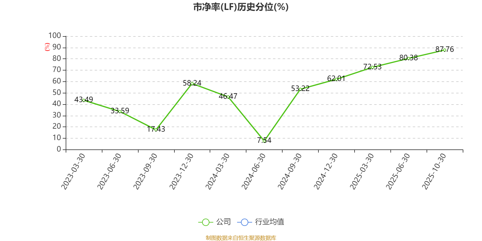 市盈率、市净率为负时,不显示当期分位数,会导致折线图中断。