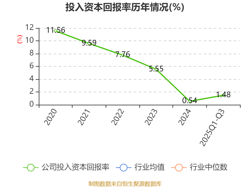 盈利能力方面, 2025年前三季度公司加权平均净资产收益率为1.15%,同比下降0.03个百分点。公司2025年前三季度投入资本回报率为1.48%,较上年同期下降0.15个百分点。