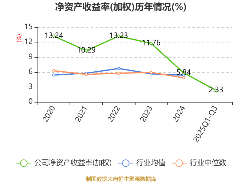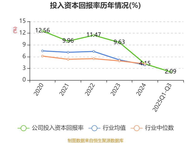盈利能力方面, 2025年前三季度公司加权平均净资产收益率为2.33%,同比下降1.58个百分点。公司2025年前三季度投入资本回报率为2.09%,较上年同期下降0.49个百分点。
