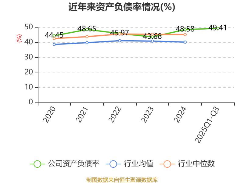 负债重大变化方面,截至2025年三季度末,公司长期借款较上年末增加140.16%,占公司总资产比重上升2.54个百分点;应交税费较上年末减少70.76%,占公司总资产比重下降1.08个百分点;其他应付款(含利息和股利)较上年末减少4.39%,占公司总资产比重下降1.04个百分点;应付票据及应付账款较上年末增加8.65%,占公司总资产比重上升0.71个百分点。