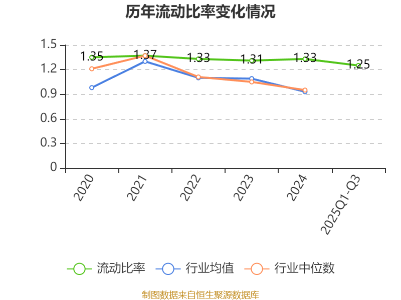2025年前三季度,公司流动比率为1.25,速动比率为0.83。