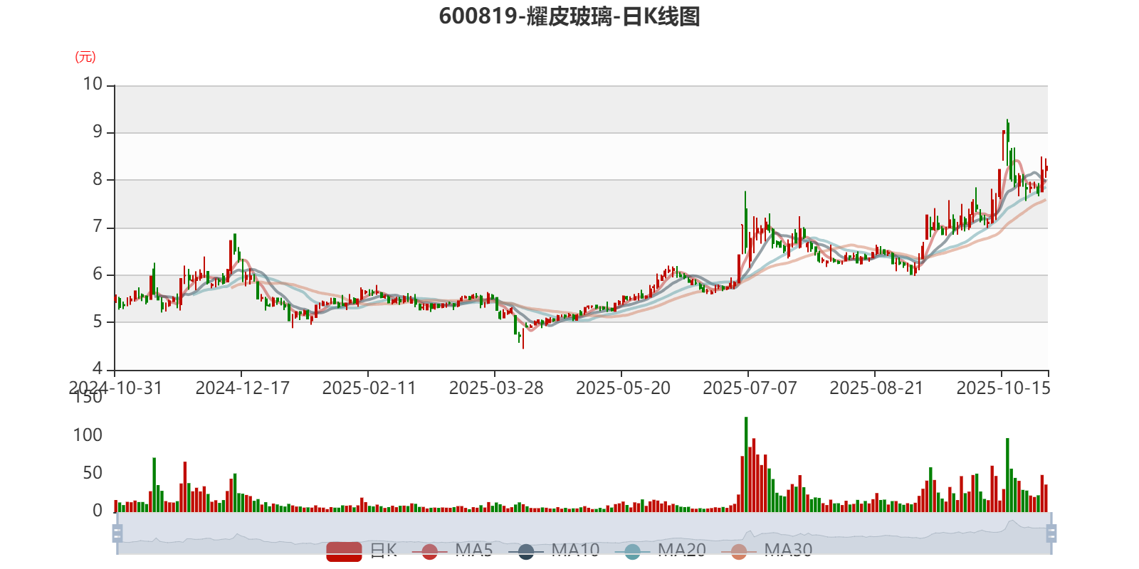 中证智能财讯耀皮玻璃(600819)10月31日披露2025年第三季度报告。前三季度公司实现营业总收入40.69亿元,同比下降1.48%;归母净利润1.24亿元,同比增长28.67%;扣非净利润1.11亿元,同比增长41.23%;经营活动产生的现金流量净额为3.61亿元,同比下降3.56%;报告期内,耀皮玻璃基本每股收益为0.13元,加权平均净资产收益率为3.53%。
