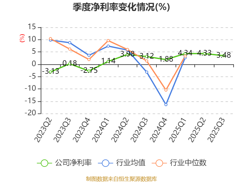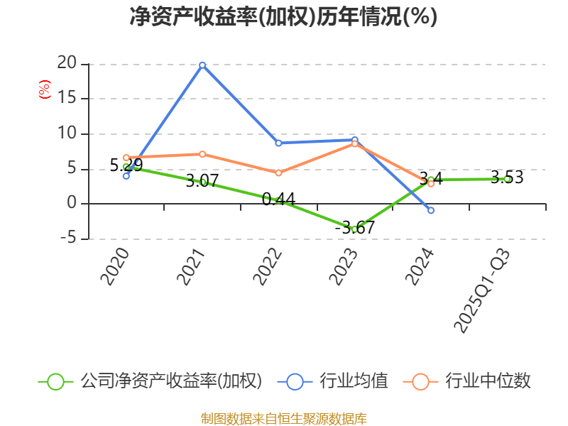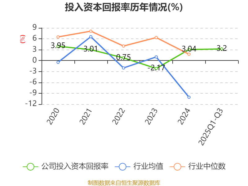 盈利能力方面, 2025年前三季度公司加权平均净资产收益率为3.53%,同比上升0.71个百分点。公司2025年前三季度投入资本回报率为3.2%,较上年同期上升0.76个百分点。
