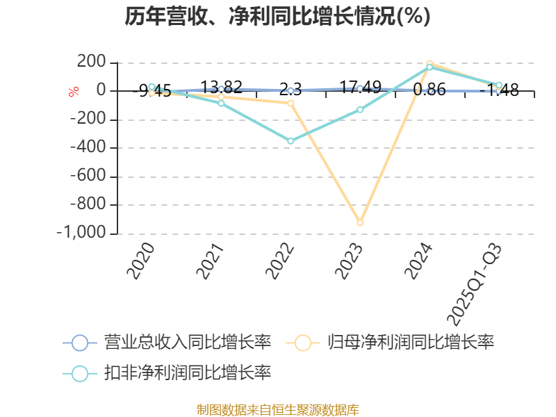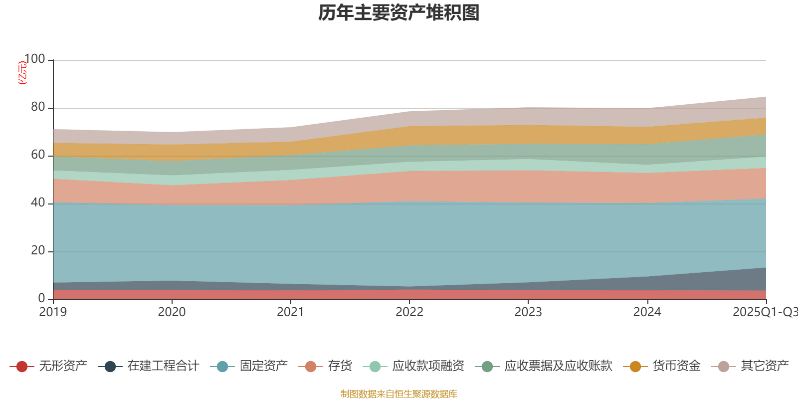 资产重大变化方面,截至2025年三季度末,公司固定资产较上年末减少5.92%,占公司总资产比重下降4.33个百分点;在建工程合计较上年末增加66.29%,占公司总资产比重上升4.11个百分点;应收款项融资较上年末增加39.96%,占公司总资产比重上升1.35个百分点;货币资金较上年末减少3.27%,占公司总资产比重下降0.8个百分点。