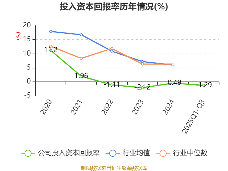 盈利能力方面, 2025年前三季度公司加权平均净资产收益率为-2.15%,同比下降1.2个百分点。公司2025年前三季度投入资本回报率为-1.29%,较上年同期下降1.37个百分点。