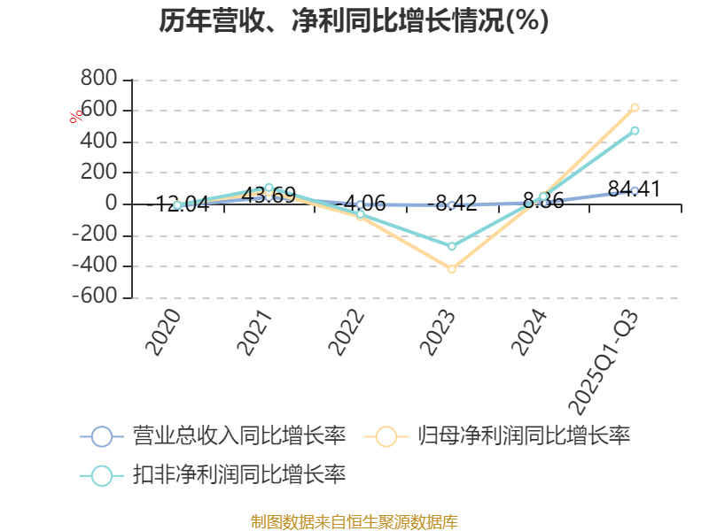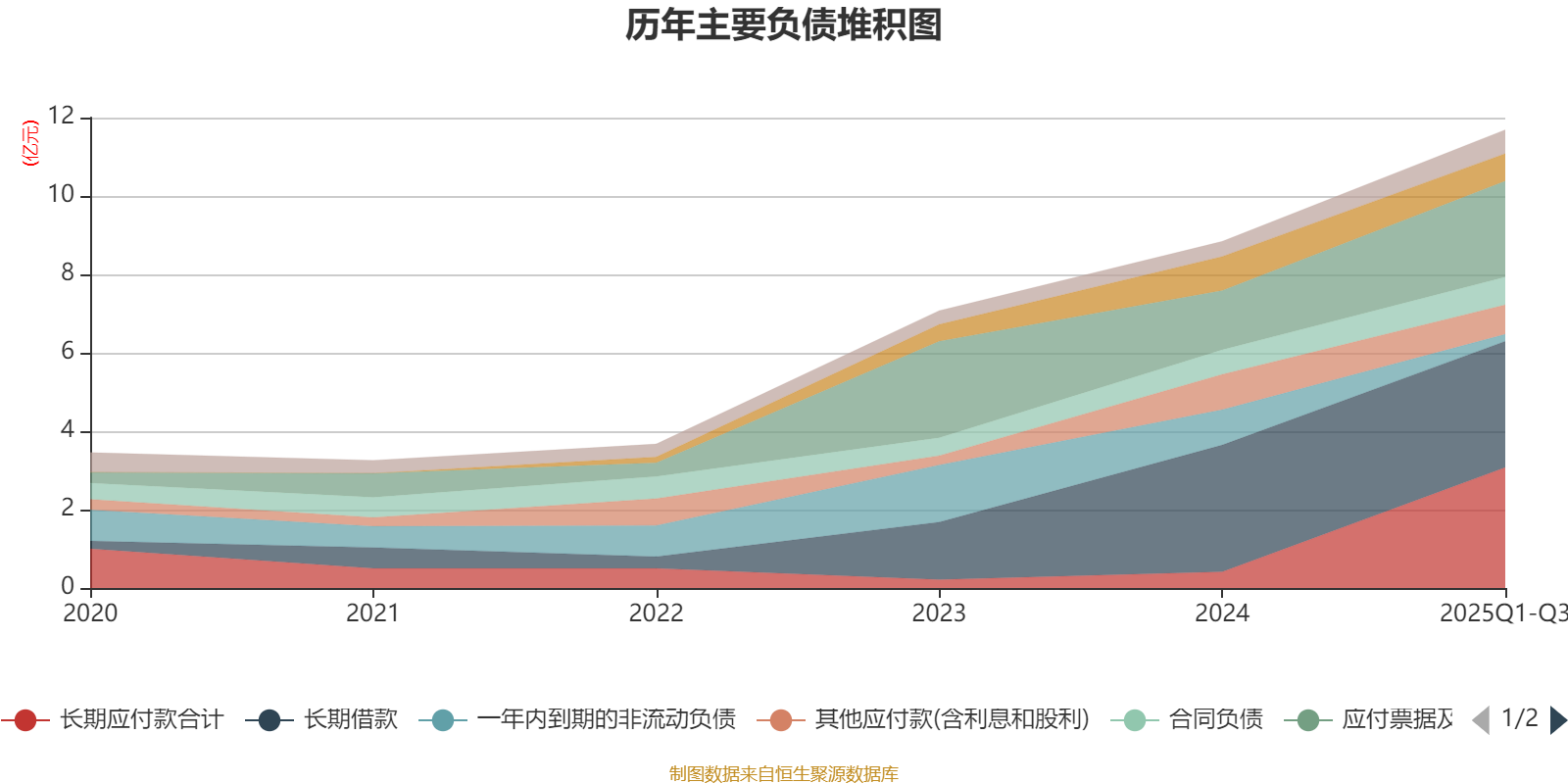 负债重大变化方面,截至2025年三季度末,公司长期应付款合计较上年末增加646.63%,占公司总资产比重上升16.76个百分点;长期借款较上年末减少0.4%,占公司总资产比重下降7.63个百分点;一年内到期的非流动负债较上年末减少80.36%,占公司总资产比重下降6.93个百分点;短期借款较上年末减少19.13%,占公司总资产比重下降3.13个百分点。