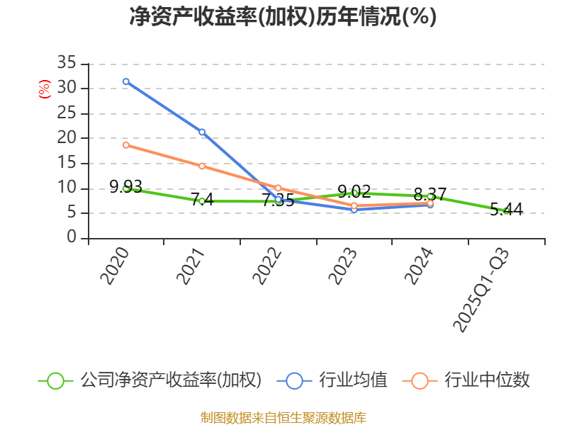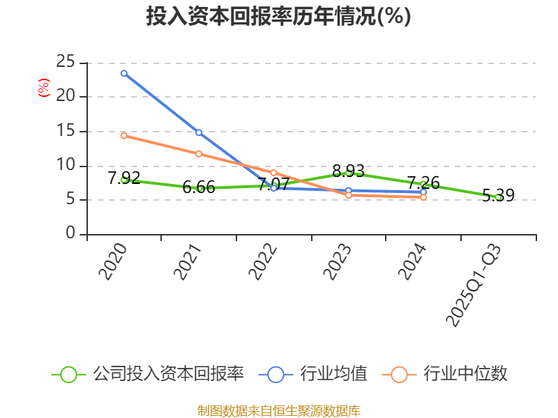 盈利能力方面, 2025年前三季度公司加权平均净资产收益率为5.44%。公司2025年前三季度投入资本回报率为5.39%,较上年同期下降3.99个百分点。