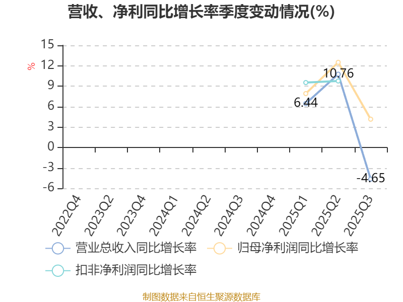 资产重大变化方面,截至2025年三季度末,公司货币资金较上年末增加99.83%,占公司总资产比重上升7.6个百分点;交易性金融资产合计较上年末增加197.22%,占公司总资产比重上升6.86个百分点;在建工程合计较上年末减少43.63%,占公司总资产比重下降5.88个百分点;固定资产较上年末增加11.06%,占公司总资产比重下降3.11个百分点。