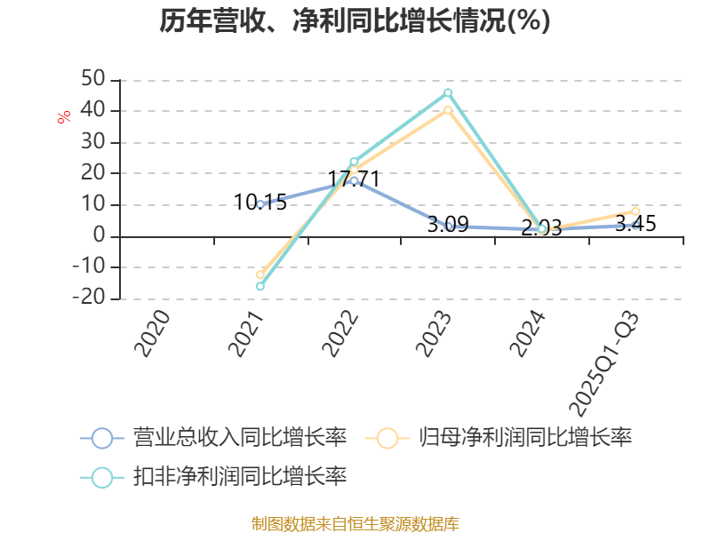 2025年前三季度,公司流动比率为3.2,速动比率为2.62。