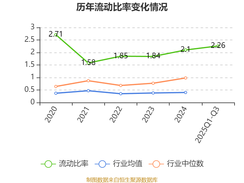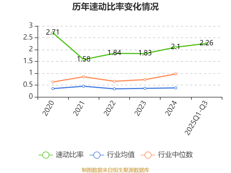 2025年前三季度,公司流动比率为2.26,速动比率为2.26。