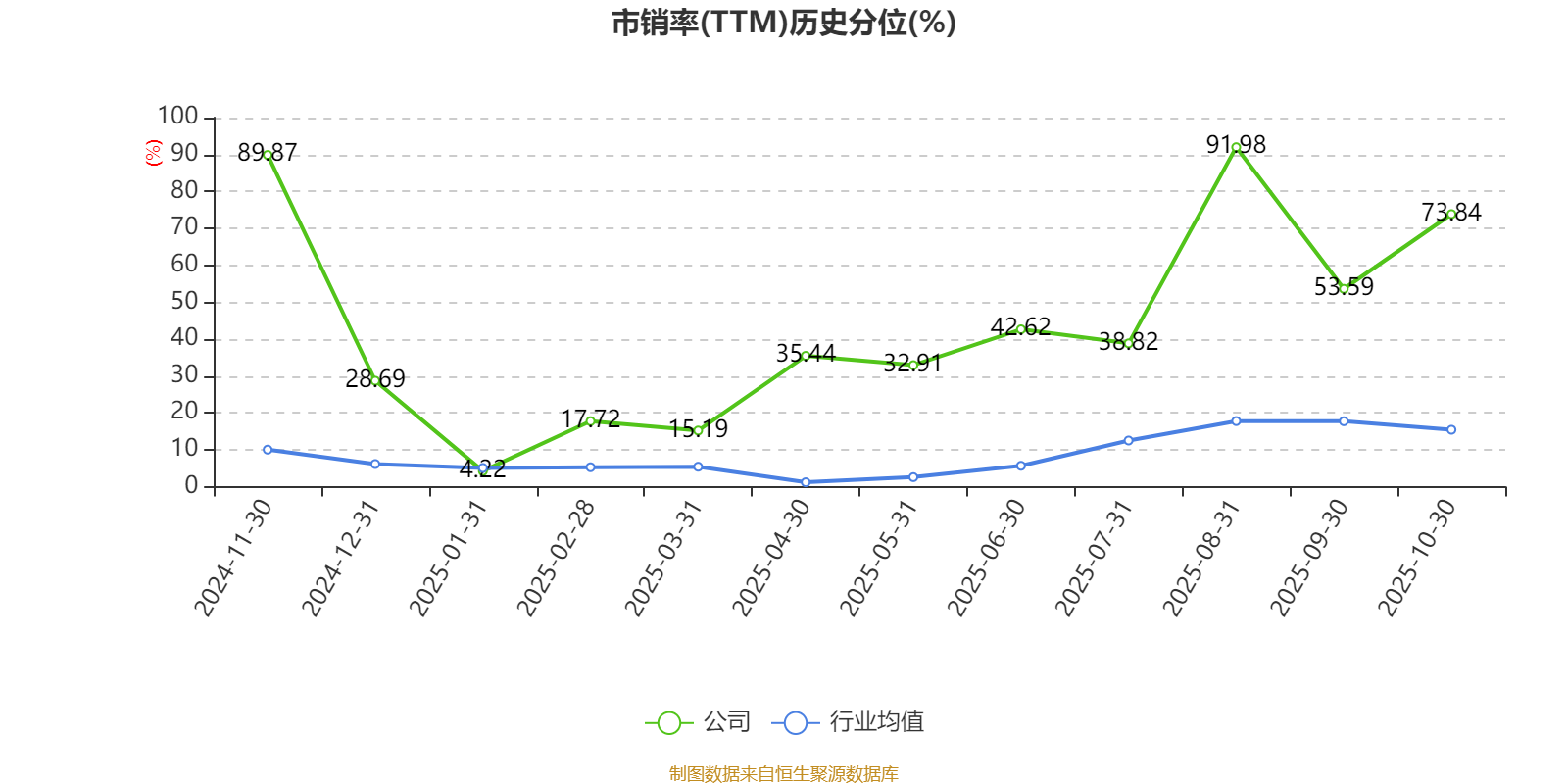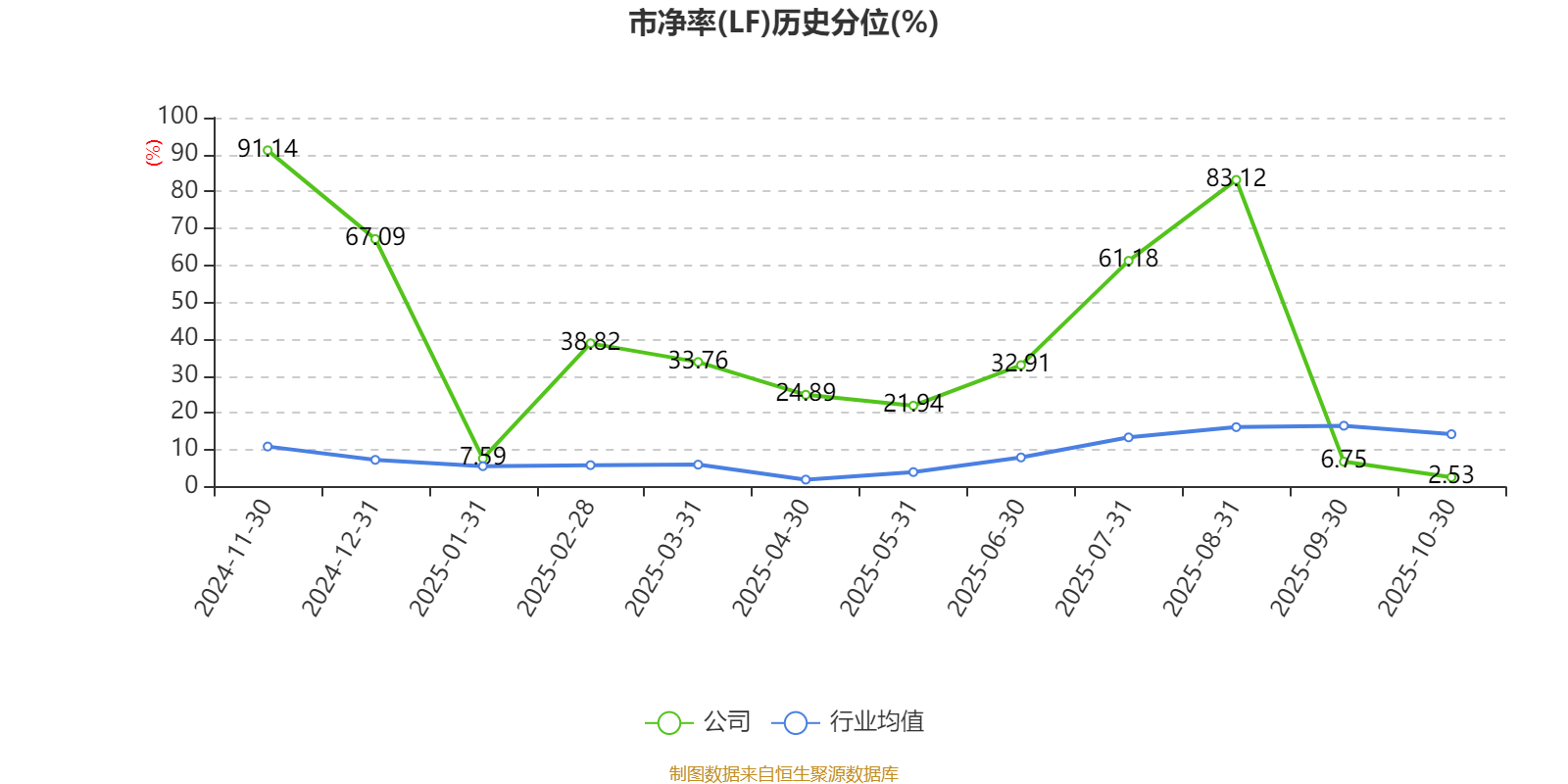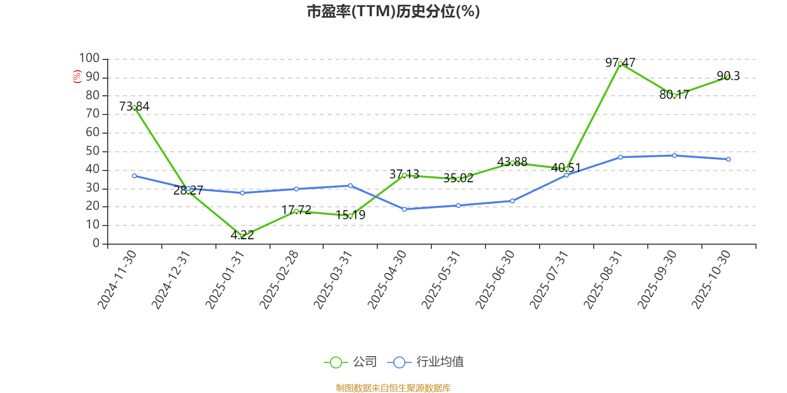 市盈率、市净率为负时,不显示当期分位数,会导致折线图中断。