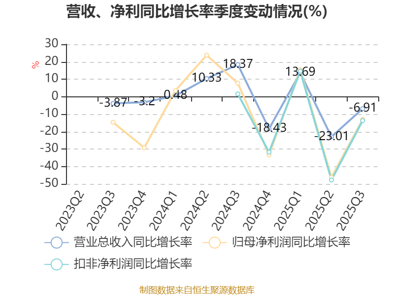 资产重大变化方面,截至2025年三季度末,公司货币资金较上年末减少2.88%,占公司总资产比重下降2.85个百分点;交易性金融资产合计占公司总资产的2.14%,上年末为0;固定资产较上年末减少5.81%,占公司总资产比重下降2.06个百分点;在建工程合计较上年末增加672.03%,占公司总资产比重上升2.01个百分点。