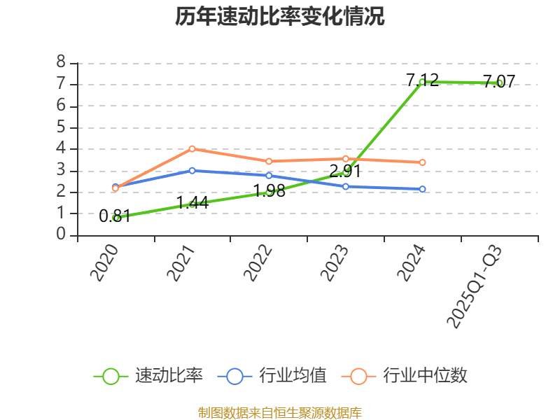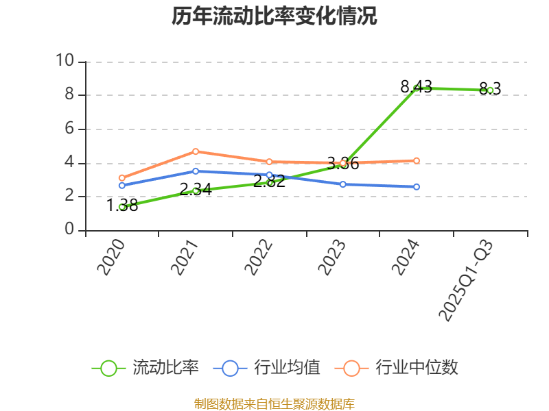 2025年前三季度,公司流动比率为8.3,速动比率为7.07。