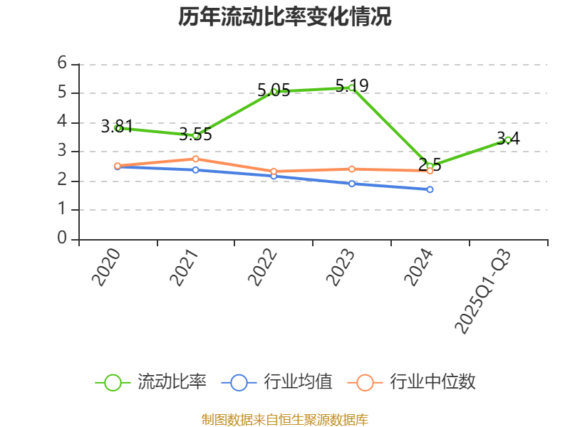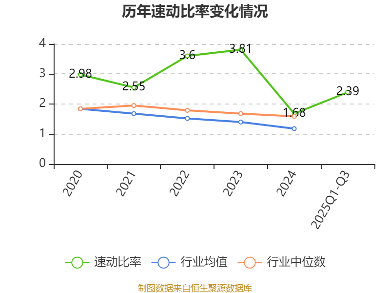 2025年前三季度,公司流动比率为3.4,速动比率为2.39。
