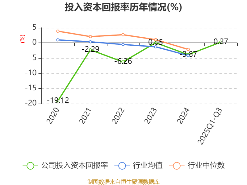 盈利能力方面, 2025年前三季度公司加权平均净资产收益率为-0.5%,同比上升2.1个百分点。公司2025年前三季度投入资本回报率为0.27%,较上年同期上升1.37个百分点。