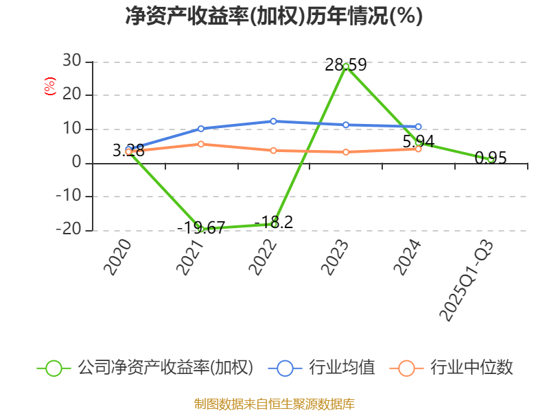 盈利能力方面, 2025年前三季度公司加权平均净资产收益率为0.95%,同比下降0.94个百分点。公司2025年前三季度投入资本回报率为1.36%,较上年同期下降1.13个百分点。