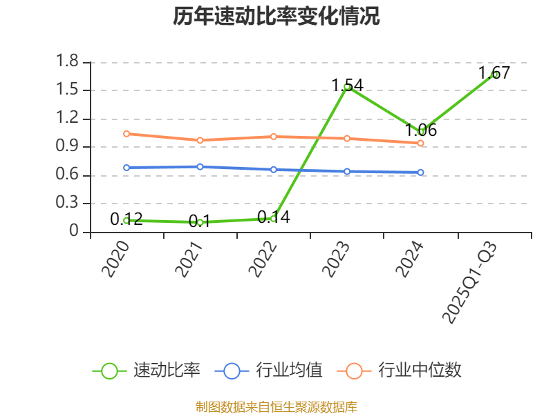 2025年前三季度,公司流动比率为1.85,速动比率为1.67。